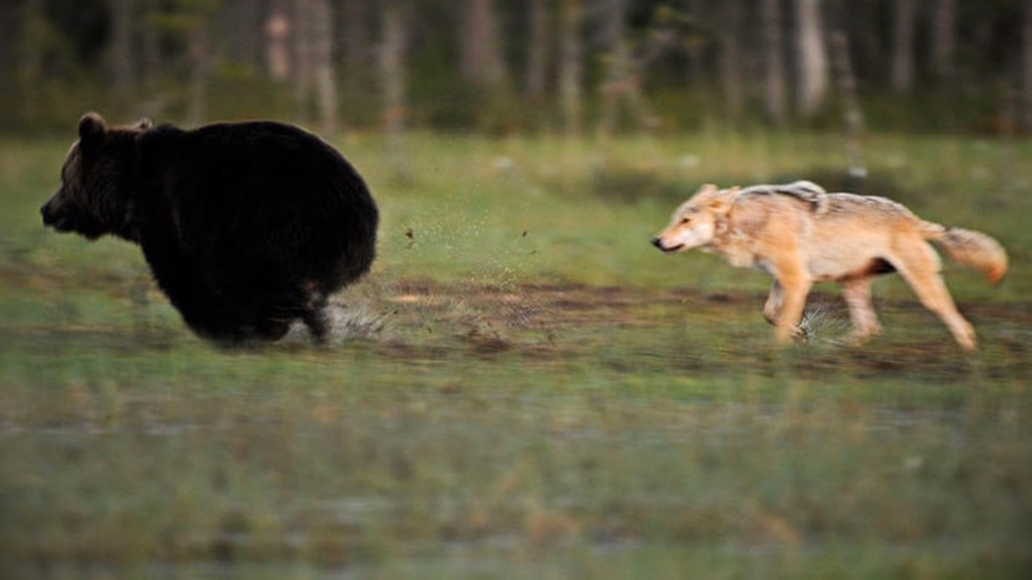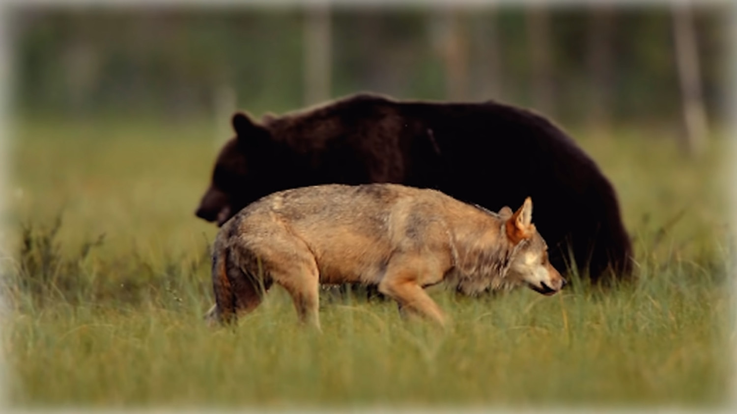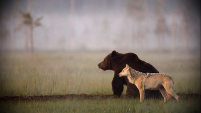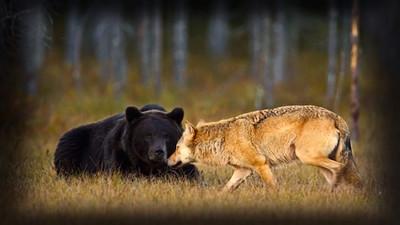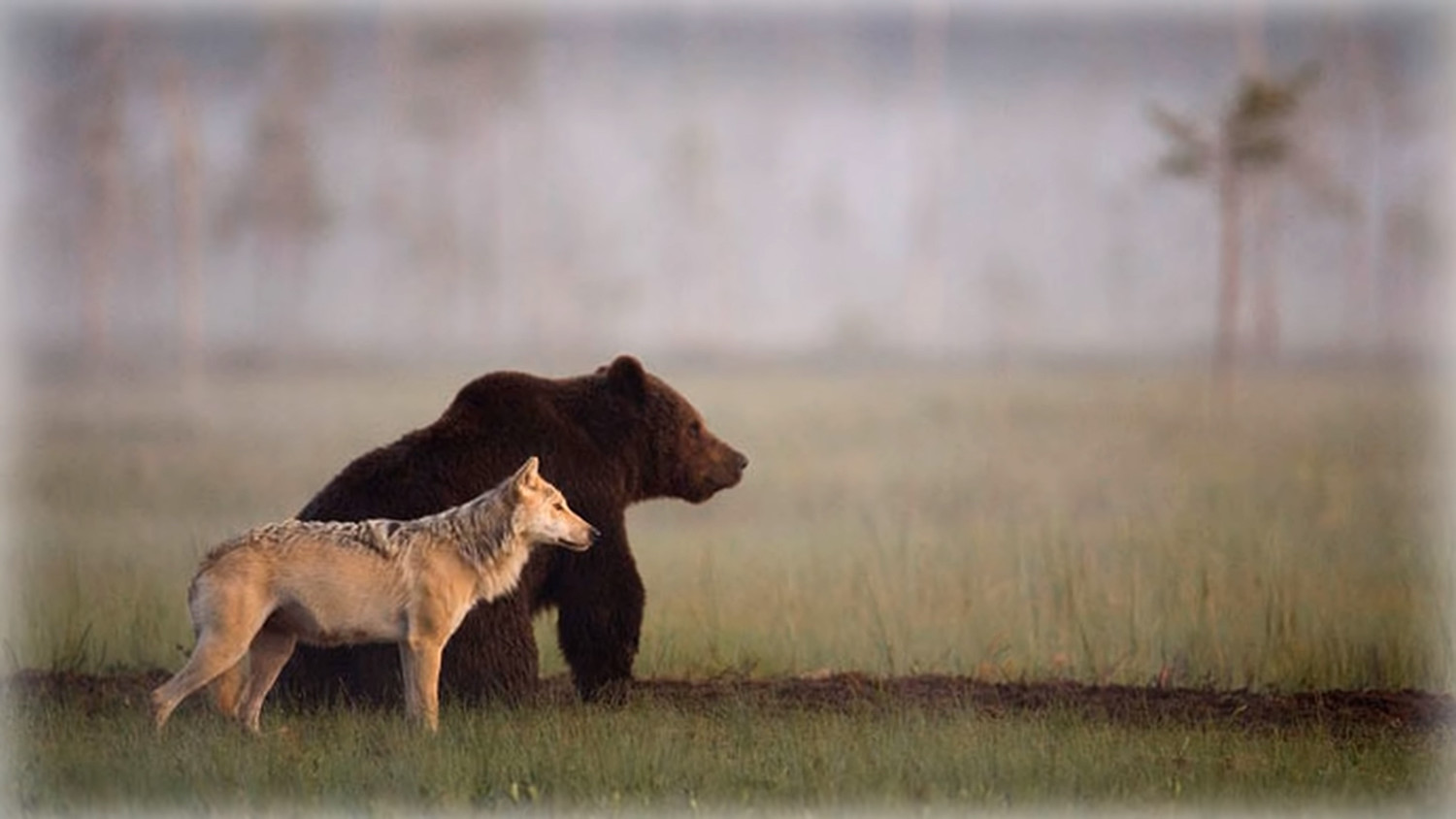 Два злейших врага, медведь и волк жили рядом друг с другом, и были лучшими друзьями. Так, в течение долгих 10 дней подряд, он наблюдал как медведь и серая волчица проводили все время вместе, они могли подолгу гулять, так как будто они и не догадываются, что они разного вида.